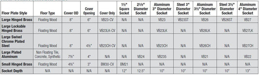 Standard Volleyball Floor Sockets with Plated Aluminum Cover Plate