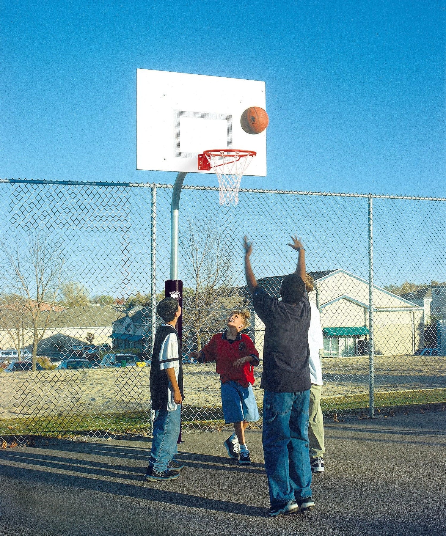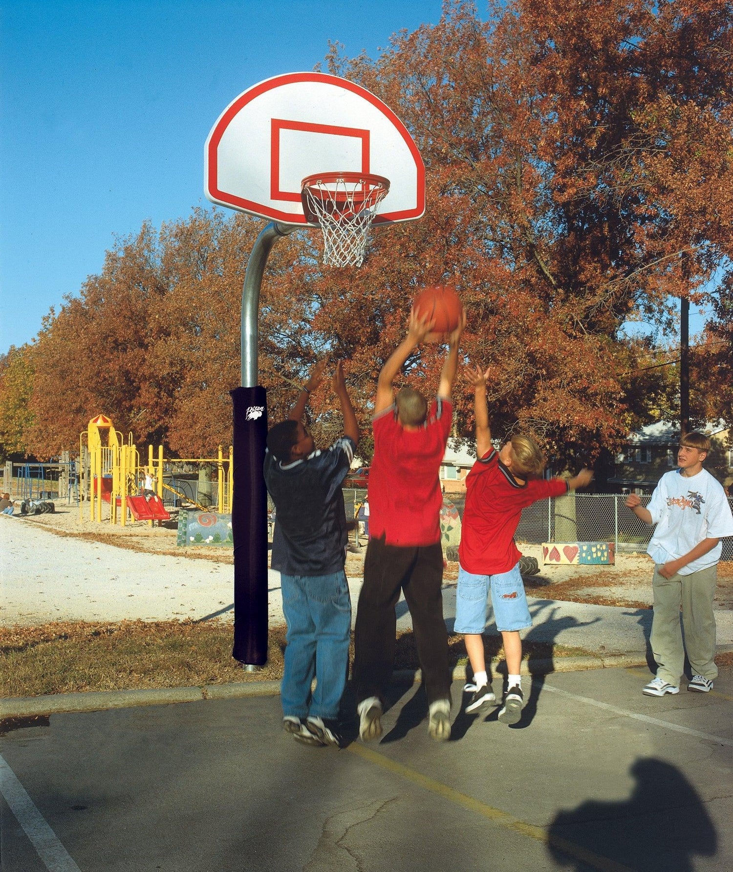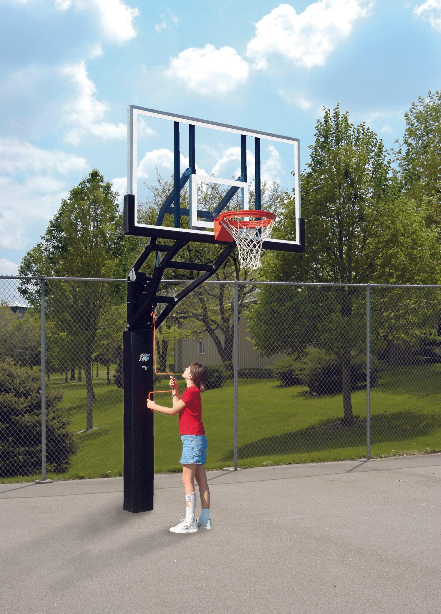 4-1/2'' Gooseneck SystemsHeavy-Duty outdoor playground basketball systems have a 48″ or 60″ safe play...